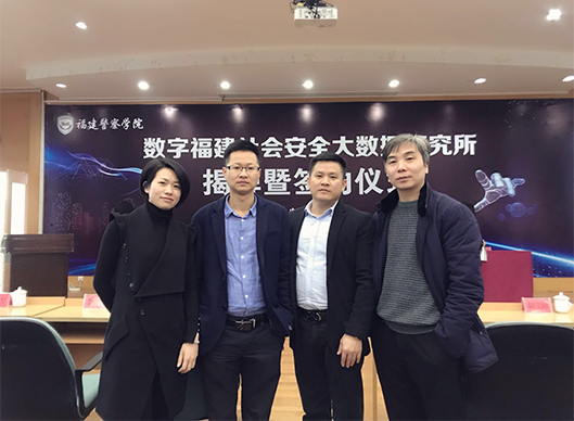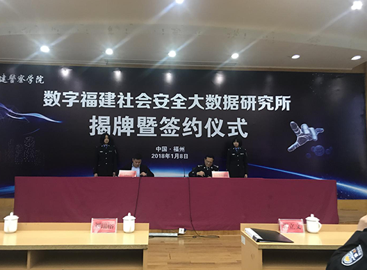 2018年1月8日,由福建警察学院举办的数字福建社会安全大数据研究所揭牌暨签约仪式在福建警察学院顺利举行,福建警察学院院长刘瑞榕、副院长胡宝珍、学院教授及行业相关人员共同出席。福建省公安厅110大数据情报指挥中心、刑事技术总队、网络安全总队、交通警察总队、经济侦查总队、禁毒总队、科技通信处、晋江市公安局等27个单位的58位代表出席,我司四位领导应邀参加了签约仪式。